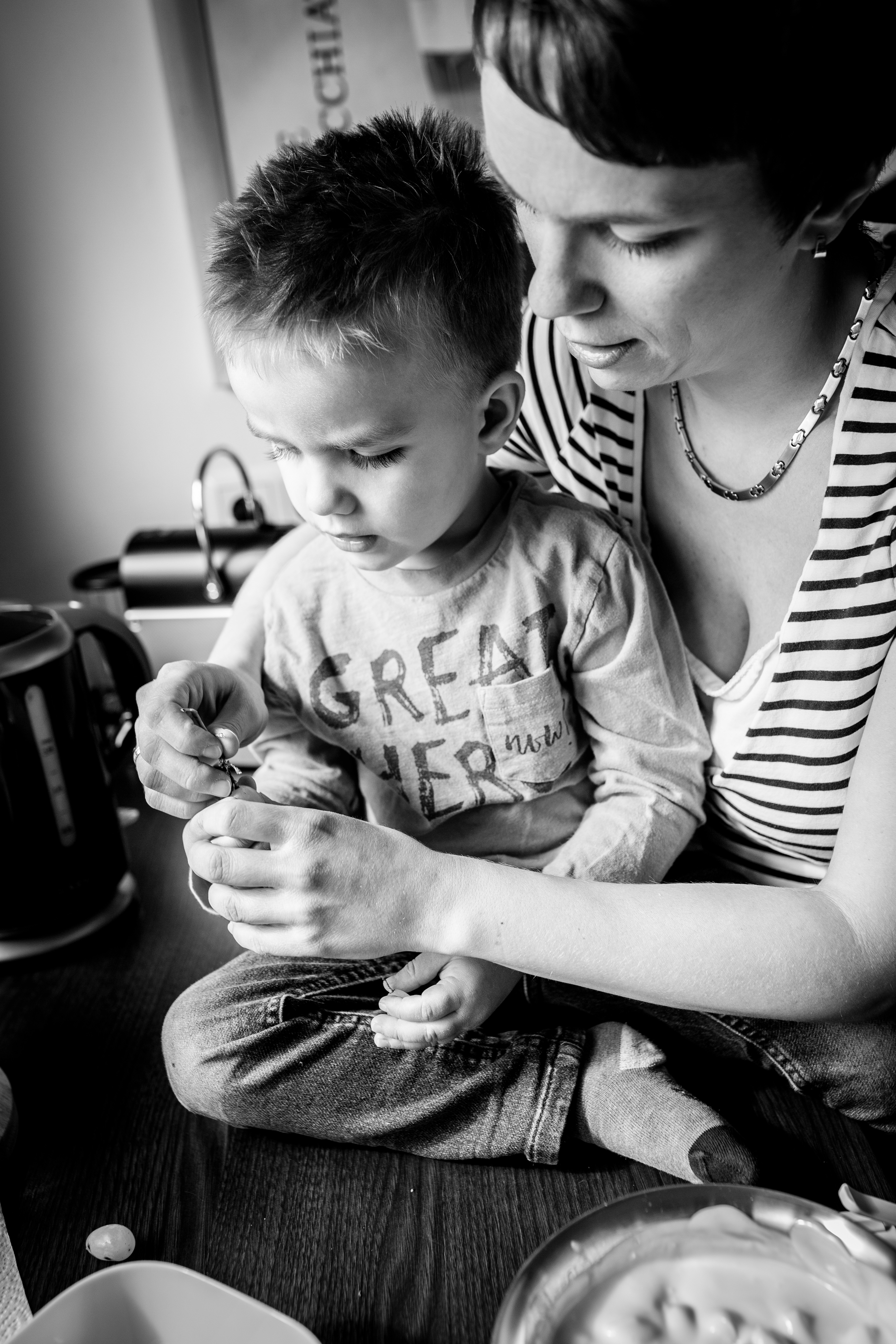 Ich habe die Familie vom Vormittag bis zum späten Nachmittag begleitet: mit der Kamera nur beobachtet, nicht eingegriffen oder irgendetwas beeinflusst. Dabei habe ich den „Alltag“, wie er mit einem Neugeborenen und einem größeren Geschwisterkind eben so ist, eingefangen: Stillen, Essen, kleineren Trotzanfällen, Kuscheln und Abenteuer im Wald.